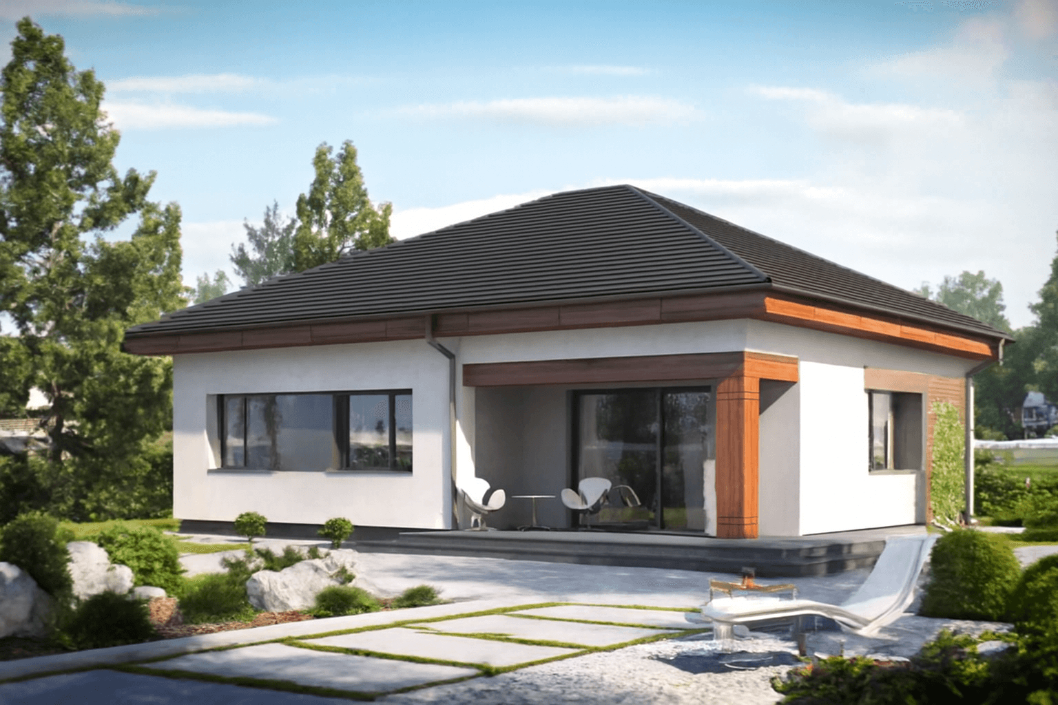 - Pokrycie dachu (blachodachówka) wraz z montażem. Rodzaj poszycia dachu do wyboru z naszego katalogu