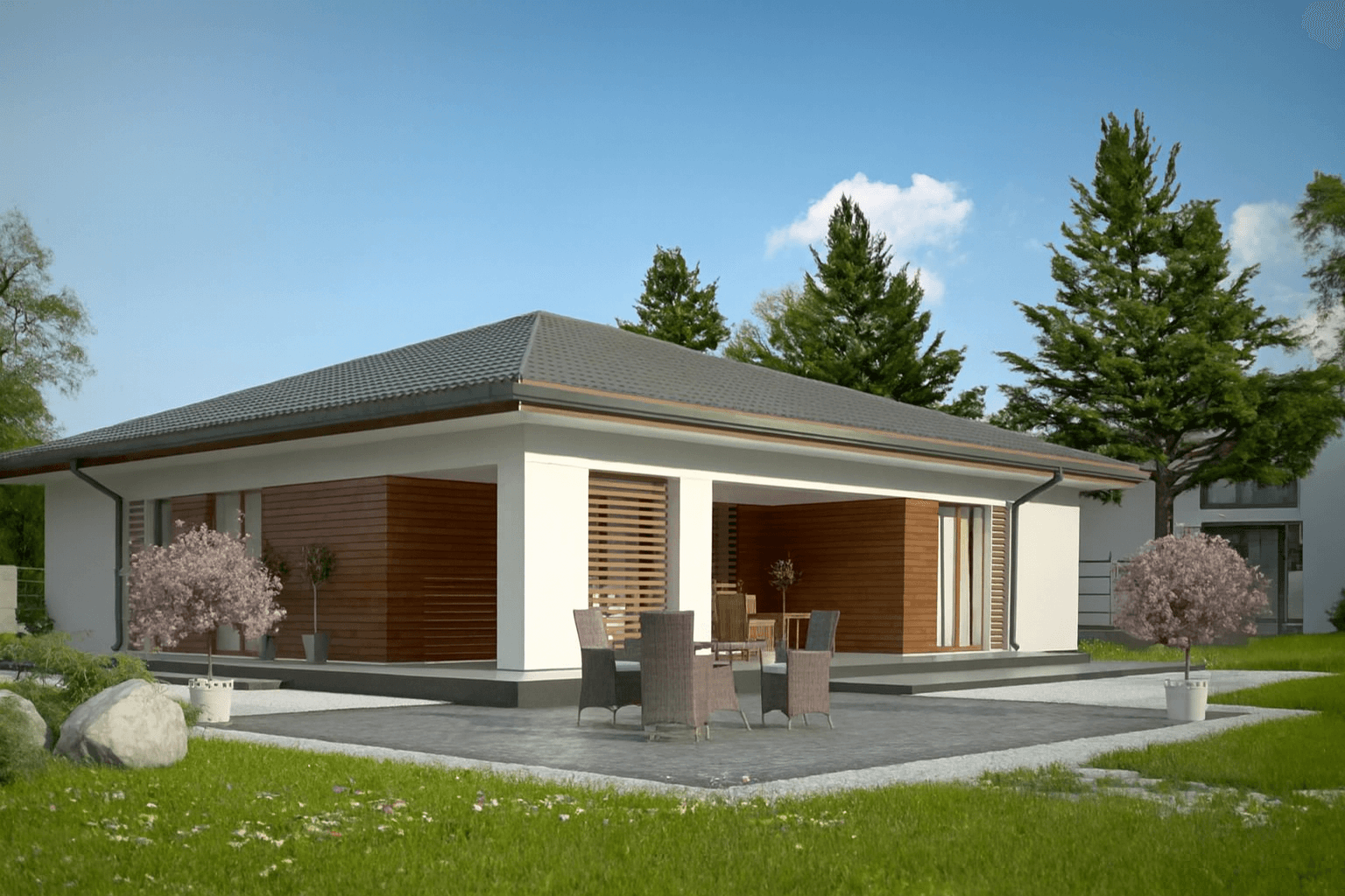 - Pokrycie dachu (blachodachówka) wraz z montażem. Rodzaj poszycia dachu do wyboru z naszego katalogu