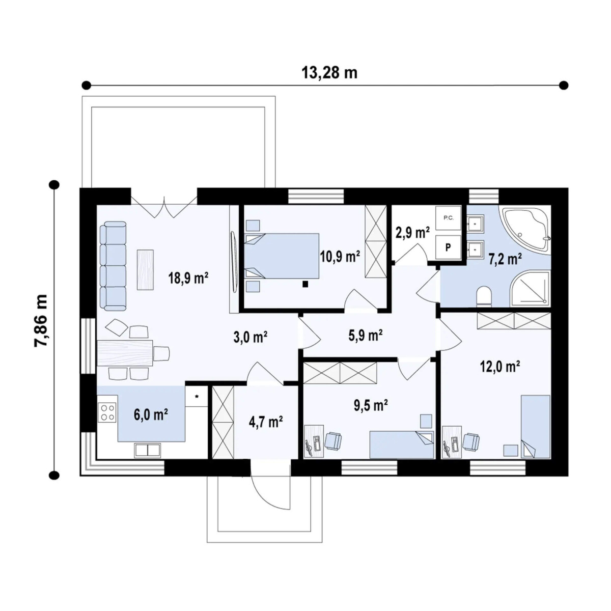 - Prefabrykowane ściany zewnętrzne o przekroju 15cm i wewnętrzne 10-12cm z przygotowanymi peszlami pod instalację elektryczną i miejscami montażu instalacji wodno-kanalizacyjnej