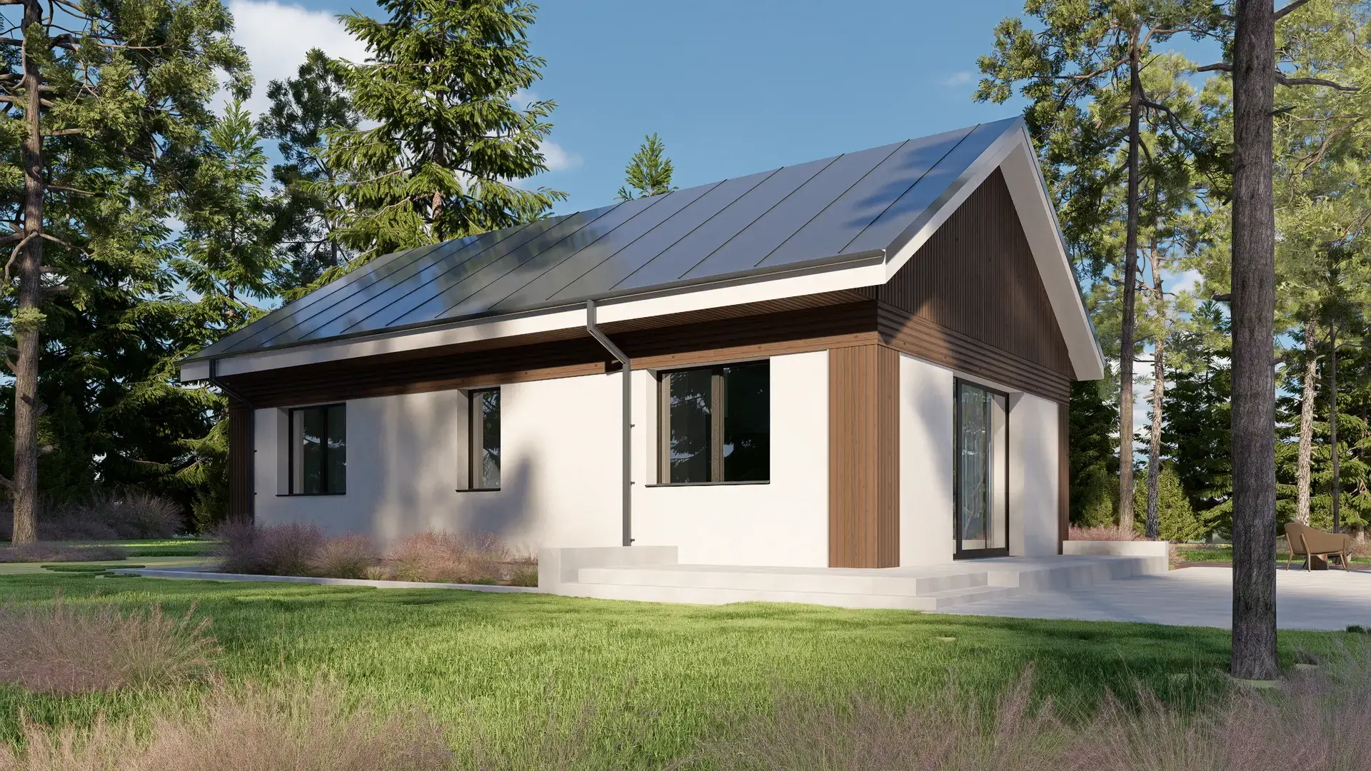 - Pokrycie dachu (blachodachówka) wraz z montażem. Rodzaj poszycia dachu do wyboru z naszego katalogu